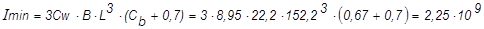 Мінімальне значення моменту інерції поперечного перетину корпуса повинне бути не менш ніж: