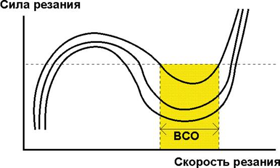 Теоретическим обоснованием высокоскоростной обработки являются так называемые кривые Соломона, которые показывают снижение сил резания в некотором диапазоне скоростей.