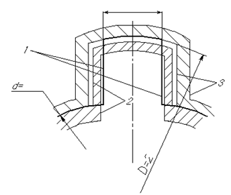 Рис. 7. Предельные контуры шлицевых деталей: 1 – номинальный контур соединения, 2 – предельные контуры зуба вала, 3 – контуры паза