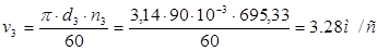 ω3 = π ×n3 /30 = 3,14× 17,38/30 = 1,82 с-1 ; (14)