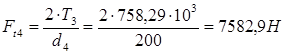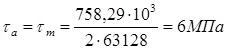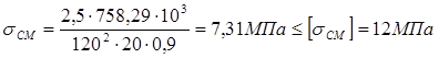 t=2×T/(b4 ×lр4 ×d4 )=2×758,29×103 /(20×80×70)=13,5 МПа£[t] =100 МПа,