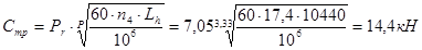 Кт — коэффициент, учитывающий влияние температуры подшипникового узла (t < 100°), КТ = 1.