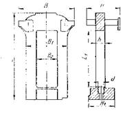 На рис. 11 показана отливка станины рабочей клети прокатного стана, для которой в соответствии с типовой технологией приняты дифференцированные значения усадки; по наружным размерам L, B, B1, H, h1-1,5%, по внутренним L1-0,75%, B2-0,5%, d-1%. Практика показала, что эти значения приемлемы для всего классификационного раздела.