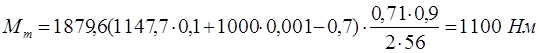 коэффициент трения подшипников, приведённый к цапфе колеса мц = 0,02 /1, стр. 237/;