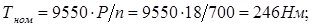мощность N = 18 кВт, число оборотов nд. = 700 об/мин,
