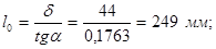 Ход клина, определяемый зазором между планкой рычага и рельсом, определяется по формуле: