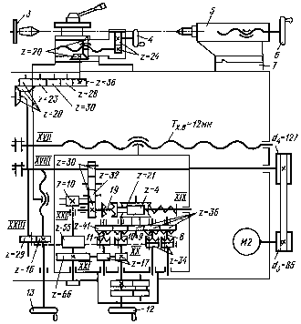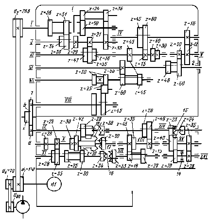Кинематическая схема токарно-винторезного станка мод. 16К20