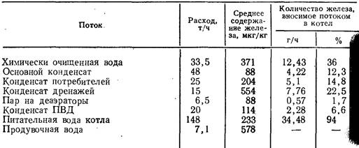 Железо в пароводяной цикл поступает вследствие коррозии всего тракта. В табл. 17.1 приведено содержание железа в воде всех потоков для одной ТЭЦ Тулэнерго. Как видно из таблицы, в основном железо поступает в котлы от не защищенного от коррозии оборудования химводоочистки и дренажей подогревателей. Железо попадает в воду также в результате отслаивания железо-оксидных отложений в котле при колебаниях температуры на отдельных участках. Вследствие большого количества загрязнений, поступающих в тракт от фильтров обессоливания, представляется целесообразным применение обезжелезивания перед деаэраторами, что позволяет снизить стоимость подогревателя низкого давления (ПНД) путем замены в них трубок из аустенитной стали на трубки из углеродистой стали. Так как температура перед деаэраторами значительно выше, чем на „блочной опреснительной установке (БОУ), то и растворимость железа здесь будет значительно меньше, т. е. железо будет находиться в основном виде железооксидного шлама.