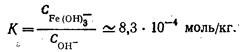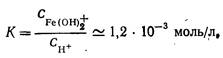 При рН=8,5 ионы Fe(OH)+ и Fe2+ присутствуют в одинаковых количествах и обусловливают суммарную концентрацию железа около Ю-4 моль/кг, или 5600 мкг/кг.