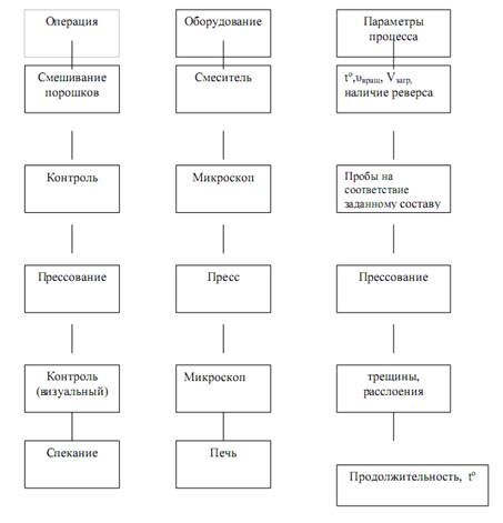 Схема маршрутно-технологического процесса изготовления детали методом порошковой металлургии