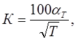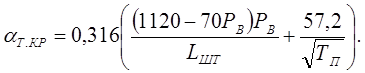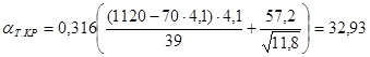 κ - коэффициент, определяемый по разности между фактическим коэффициентом крутки αТ и критическим коэффициентом крутки αТкр.