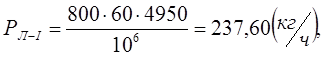 Р'ПЛ (ЛС) = 262,69×0,9132/1 = 239,88 (кг/ч);