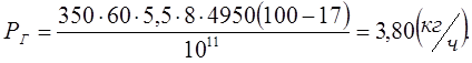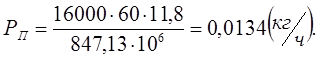Р'ПЛ (КП) = 0,0123×20,8398/20 = 0,0128 (кг/ч);
