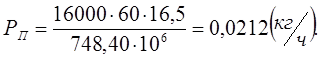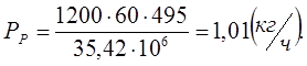 Р'ПЛ (РМ) = 0,9370×2,1221/2 = 0,99 (кг/ч);