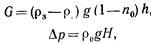 Взвешенный слой загрузки находится под действием двух противоположно направленных сил: силы тяжестиG , направленной вертикально вниз и равной массе фильтрующей загрузки в воде; разности сил давления на нижнюю и верхнюю поверхности взвешенной загрузки; эта сила, отнесенная к м2 поверхности фильтра, может быть выражена через Δр. Поскольку система находится в равновесии, то очевидно, чтоG = Δp . ВеличиныG и Ар можно выразить следующим образом: