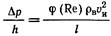 где Др/А - потеря напора, м, на единицу толщины зернистого слоя; ии - истинная средняя скорость потока в толще слоя, см/с; I - характерный линейный параметр - гидравлический радиус зернистого слоя, см; Re - число Рейнольдса; р. - динамическая вязкость, Па*с; φ (Re) = - коэффициент сопротивления.