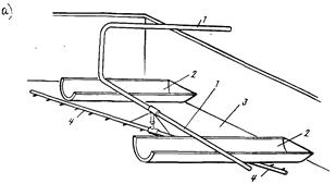 Вращающаяся система состоит из подвешенной трубы, от которой в центре фильтра опускается стояк, вращающейся пяты на стойке, двух горизонтально расположенных вращающихся труб с насадками и двух растяжек, придающих системе необходимую жесткость. Пята на стояке должна располагаться примерно на уровне кромок желобов, чтобы в нее не могли попадать зерна взвешенной фильтрующей загрузки. Общая длина вращающейся трубы принимается с таким расчетом, чтобы концы труб не доходили до стенок фильтра на 200.250 мм. На каждом плече вращающейся трубы располагаются насадкитаким образом, чтобы при вращении труб струи воды, выходящие из насадок на одном плече трубы, приходились между струями, выходящими из насадок другой трубы. Расстояние между соседними насадками принимают 200.250 мм.