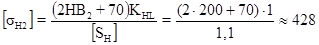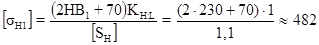 KHL- коефіцієнт довговічності; при числі циклів навантаження більше базового, що має місце при тривалій експлуатації редуктора, приймають KHL=1; коефіцієнт безпеки