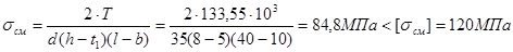 довжина шпонки l=56 мм (при довжині маточини колеса 65 мм);