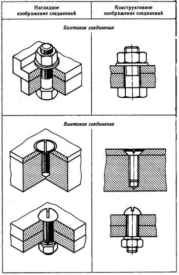 Рис.2 Болтовое соединение, Винтовое соединение.