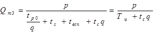 3. Техническая производительность Q т — теоретическая производительность машины с реальными холостыми ходами и учетом ее собственных простоев Σt c , связанных с выходом из строя инструментов, приспособлений, оборудования, т.е. при условии t х > 0, t всп > 0 и Σt с > 0: