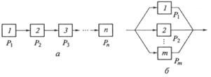 При расчленении сложной системы на отдельные элементы, для каждого из которых можно определить вероятность безотказной работы, для расчета надежности широко используют структурные схемы. В этих схемах каждый i - й элемент характеризуется своей вероятностью Pi безотказной работы в течение заданного периода времени. Исходя из этих данных, определяют вероятность безотказной работы P (t ) всей системы.