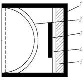 Конструктивная схема емкостного микрофона, который содержит размещенные в корпусе 1 мембрану 2 из электропроводящего материала, неподвижную пластину 3, установленную на диэлектрике 4, и демпфирующий слой 5. При изменении акустического давления мембрана 2 деформируется и изменяется ее расстояние до пластины 3. В результате происходит изменение электрической емкости микрофона, что и используется.