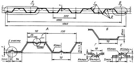 б) Размеры шага, ширины, радиусов кривизны и глубины гофров, высоты ступенек на готовых профилях не контролируются.