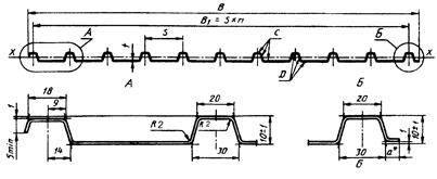1.7.3 Разность ширины крайних узких полок гофров профилированных листов должна быть не менее 2 мм.