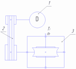 Склад привода: 1 – електродвигун; 2 – клинопасова передача; 3 – редуктор черв’ячний