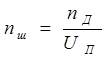 Розрахункове загальне передаточне число привода U' визначаємо із співвідношення частот обертання вала двигуна nд та вихідного вала привода nд :