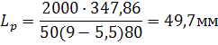 Приймаємо довжину L=Lp+b=33,4+16=49,4мм, зі стандартного ряду L=50мм