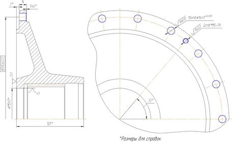 - 18 отв. Æ14Н7 предназначены для прикрепления полумуфты к обойме пальцами и гайками.