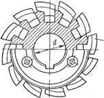 На рис. 4 показана сборная червячная фреза с поворотными вставными рейками, имеющая наибольшее применение в промышленности. Фрезы этой конструкции имеют большой период стойкости, обеспечивают высокую точность и производительность.
