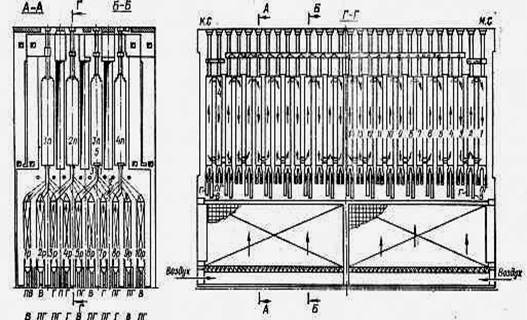 Регенераторы предназначены для подогрева воздуха и бедного газа своей насадкой, предварительно нагретой теплом отходящих продуктов горения из обогревательного простенка печей.