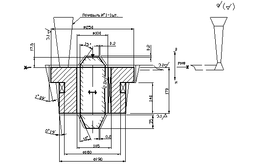 В данном разделе приводится расчёт режима резания для обработки поверхности 2. В качестве исходных данных рассматриваемого примера используются результаты выполненного задания 2 для случая вертикального расположения отливки в форме.