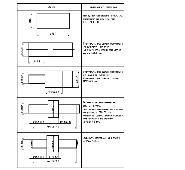 Пресс ковки состоит из чередования в определённой последовательности основных и вспомогательных операций. В качестве основной формообразующей операции в выполняемом задании используется протяжка. В качестве вспомогательной операции используют операцию разметки линейных размеров элементов, получаемых протяжкой.