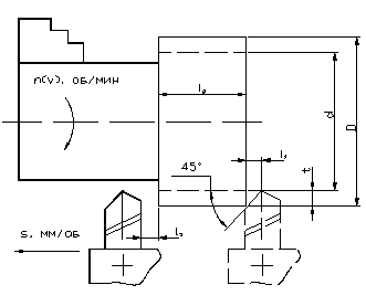 - длина врезания резца, мм. Длину врезания определяют из соотношения