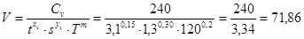 - показатели степеней, учитывающие условия обработки и равные соответственно 1,0 и 0,73;