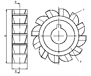 Элементы и геометрия фрезы. На рис. в показана дисковая фреза. Она состоит из корпуса 1 и режущих зубьев 2. Зуб фрезы имеет следующие элементы: переднюю поверхность 4, заднюю поверхность 6, спинку зуба 7, ленточку 3 и режущее лезвие 5. D--диаметр фрезы и L-- ширина фрезы.