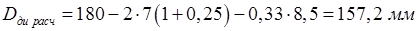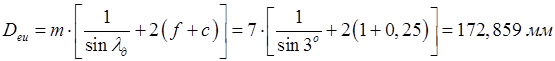 Расчетный диаметр делительного цилиндра учитывает изменение ряда геометрических параметров (угол подъема винтовой линии, угол наклона передней поверхности и др.) червячной фрезы при перетачивании ее в процессе эксплуатации. Для уменьшения отклонения эксплутационных значений параметров от расчетных величина расчетного диаметра делительного цилиндра определяется для сечения, расположенного на расстоянии (