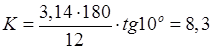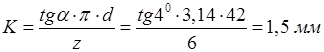 , где К – падение задней поверхности зуба (затылка) на дуге, равной