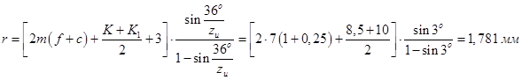 коэффициент радиального зазора между головкой зуба нарезаемого колеса и впадиной зуба фрезы. Величина