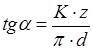 Величина расчетного угла подъема винтовой линии по делительному цилиндру определяется по формуле: