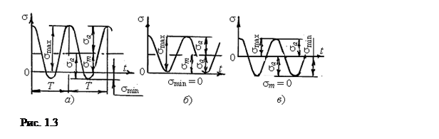 Если smin = 0, то R = 0, sm = sа = 0,5smax – цикл отнулевой (рис. 1.3, б ).