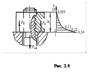 Отрывающая сила Fz разгружает стык на величину (1 – c) Fz . Напряжения сжатия sзат на стыке уменьшатся на sF = (1 – c) Fz / A ст .