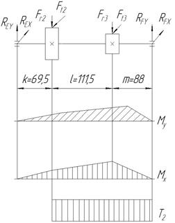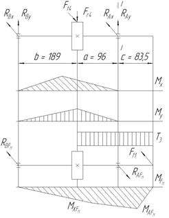 Mx = RBx b = 5564 · 0,189 = 1052 H · м