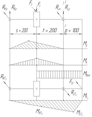 RLx (s + t) – Ft s = 0; RLx = Ft s / (s + t) = 40000 · 0,2 / 0,4 = 20000 H