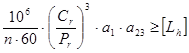 Cr - динамическая грузоподъёмность подшипника (берётся из справочных данных по подшипникам), кН;