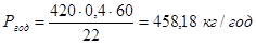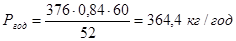 Ргод(житн)=(n·g·60)/Tвип, кг